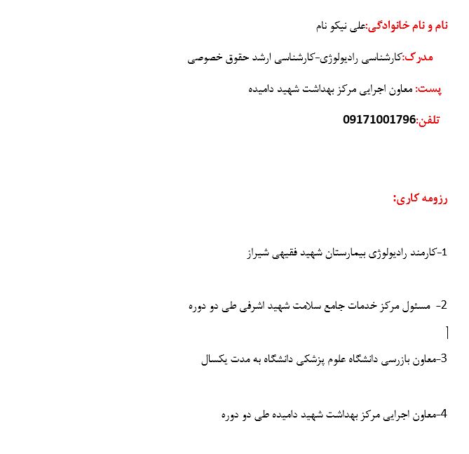 معاون اجرایی مرکز بهداشت شهید دامیده شهرستان بویراحمد