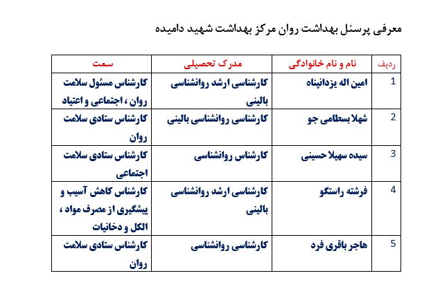 معرفی پرسنل ستادی و شرح وظایف آنها