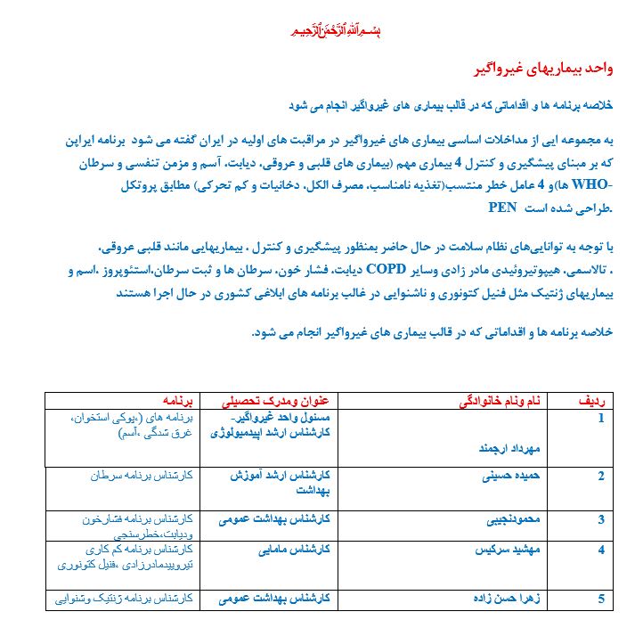 معرفی پرسنل ستادی و شرح وظایف آنها