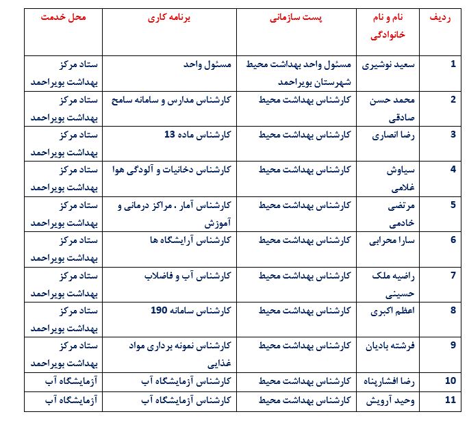 معرفی پرسنل ستادی و شرح وظایف آنها